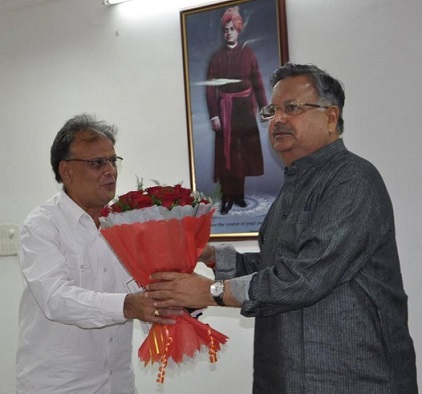 "भारत क्या है" - पुस्तक के विमोचन समारोह के दौरान, छत्तीसगढ़ के माननीय मुख्यमंत्री डॉ. रमन सिंह जी के साथ बातचीत में | सनम्र उल्लेख है के मैं उक्त पुस्तक का सम्पादक हूँ |